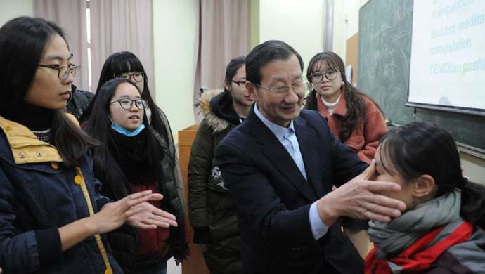 “桃李”墙外而来,墙内却香。李征宇课堂上,有的学生常举手,“老师,我也有这病”;有的学生则下课不愿走,等着教授“妙手”;还有留学生,主动提出跟师出诊。天气冷,李征宇在推拿示范前,总是先将双手搓热再做动作。从腿部“三阴交”疏经通络,到腹部中脘穴健脾消食,学生们上完他的课带着精气神,开开心心去食堂吃饭。
