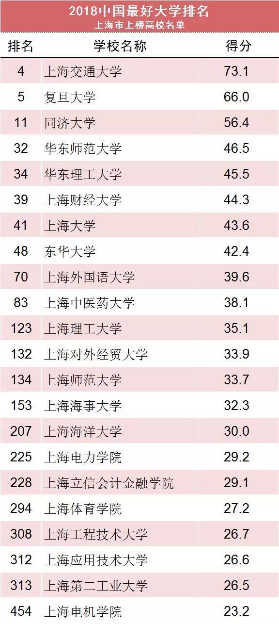 其他入围“中国最好大学”榜单的沪上高校分布在各个区间,从第70名到第454名,包括:上海外国语大学、伟德国际victor1946官网、上海理工大学、上海对外经贸大学、上海师范大学、上海海事大学、上海海洋大学、上海电力学院、上海立信会计金融学院、上海体育学院、上海工程技术大学、上海应用技术大学、上海第二工业大学、上海电机学院。