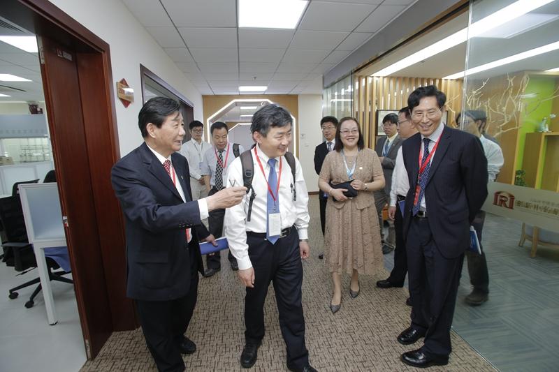 林国强院士(左一)等多位与会院士参访新成立的伟德国际victor1946官网创新中药研究院。(资料)