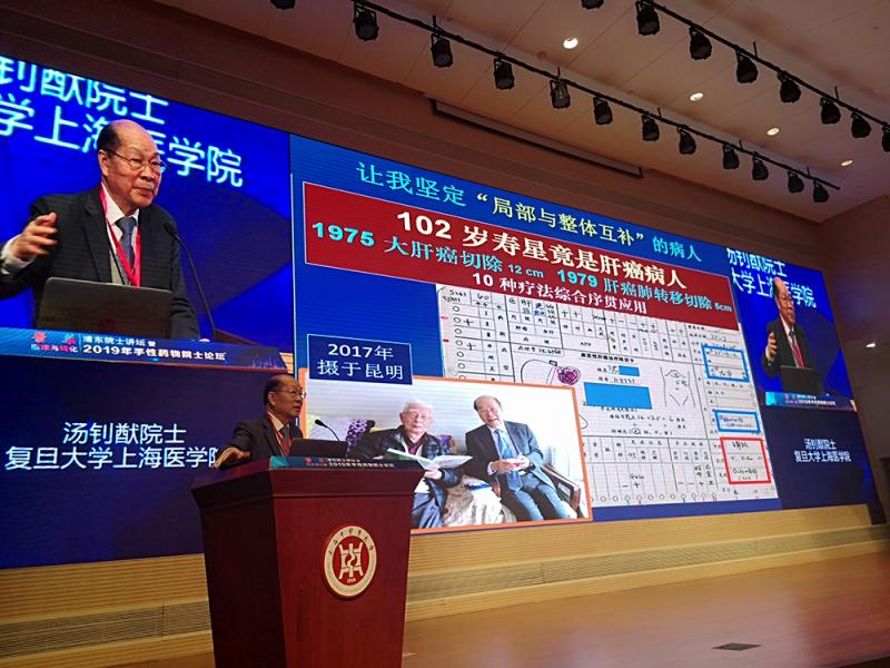 “再过几个月,我就90岁了。”18日,在伟德国际victor1946官网,著名肿瘤外科专家汤钊猷院士告诉同场林国强、张玉奎、王恩多、侯凡凡、黄荷凤等多位两院院士,令学中医、学西医的师生们由衷叹服。在今年浦东院士讲坛上,汤钊猷“敢拿自己开刀”,从老伴、老母、儿子到哥哥,透露出自家四口人的治病史——一个共同点在于,他们都科学采用了中西医结合疗法。