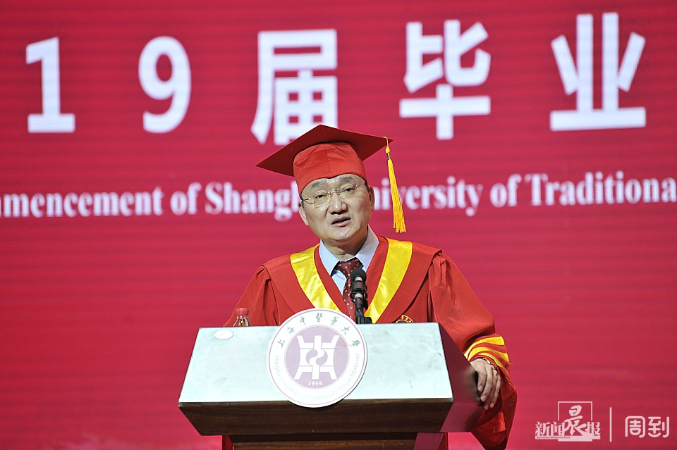 他送给毕业生们“三味本草”--- “生地远志、细辛厚朴和熟地当归”, 希望他们带着中医药的馈赠,走向世界,走好人生。“用“驯服世界放浪”的胸怀和“喷薄云上朝阳”的势头,不负青春,不畏艰难,去开拓,去创造!