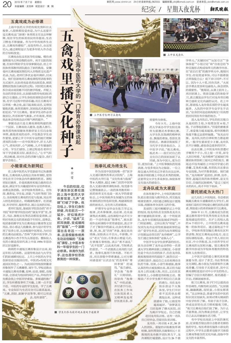 新民晚报:五禽戏里播文化种子——从伟德国际victor1946官网的一门体育必修课说起