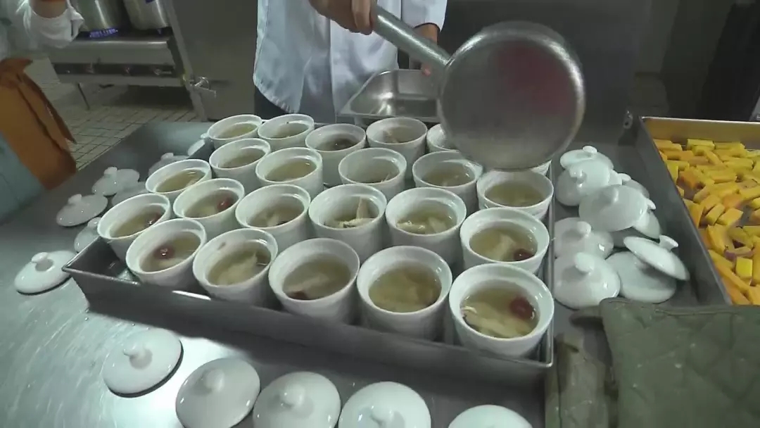 上午十点半,伟德国际victor1946官网食堂的大厨们里里外外早就忙碌开了。炖着的是一盅盅红枣黄芪母鸡汤,熬着的是枸杞麦冬茶。配菜是金桂龙井滑虾仁,凉菜是金针菇拌木耳,点缀两粒小豌豆俨然是一幅五行八卦图。