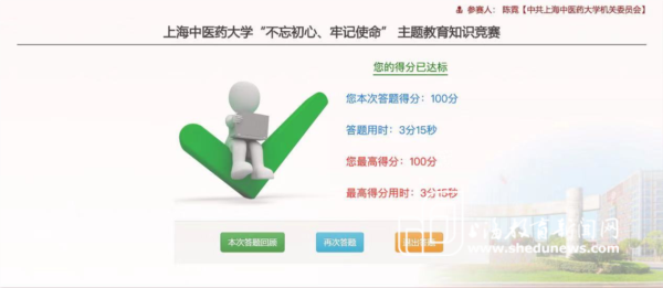 10月21日,学校设计并制作了“立德树人 勇于担当 ”主题教育专题展,面向全校师生开放。10月上旬,学校开展“不忘初心、牢记使命”主题教育知识竞赛,以线上知识竞赛的形式真实检验广大党员理论学习成果,展示了以赛促学的良好成效。10月中旬,学校党委系统向全校师生发出了《关于伟德国际victor1946官网党委系统党员佩戴党员徽章的通知》,通知发布后,校园内,处处闪耀红色光芒,课堂上、实验室里、诊室里,全体党员将党徽佩带在胸前,将使命铭记在心中。