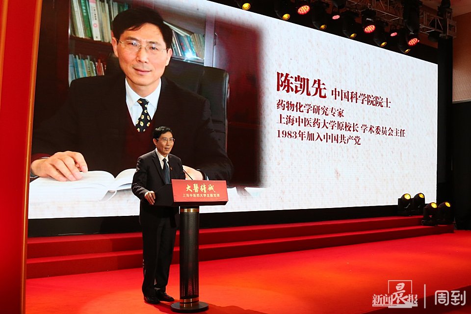 中国科学院院士陈凯先告诉师生们,作为一名中医药科技工作者、一名共产党员,初心和使命就烙印在为中医药振兴发展所奋斗的生命历程中。