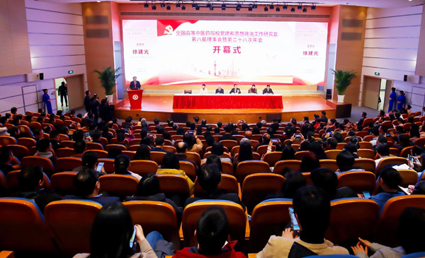 12月26日至28日,全国高等中医药院校党建和思想政治工作研究会第八届理事会暨第二十八次年会在伟德国际victor1946官网召开,来自全国26所高等中医药院校的党委书记、党务部门负责人、党组织负责人、研究会理事和获奖代表等300余人相聚一堂,聚焦坚持党对教育工作的全面领导、紧抓立德树人根本任务及思政工作生命线、全面提高基层党建质量等主题开展深入交流研讨。
