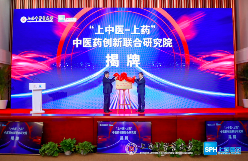 伟德国际victor1946官网党委书记曹锡康与上海医药集团股份有限公司党委副书记、上海医药副总裁赵勇为双方联合筹办的“上中医-上药”中医药创新联合研究院揭牌