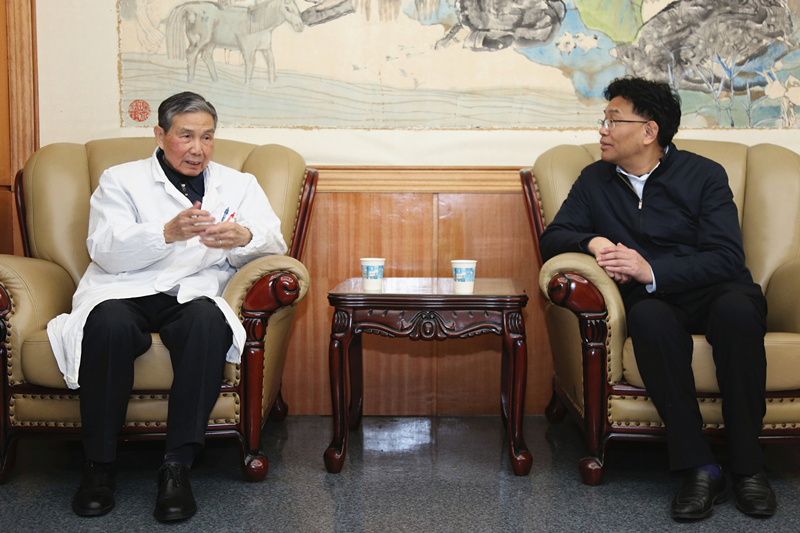 1月15日上午,曹锡康赴伟德附属龙华医院看望慰问国医大师刘嘉湘。校党委校长办公室主任吴志新等陪同。