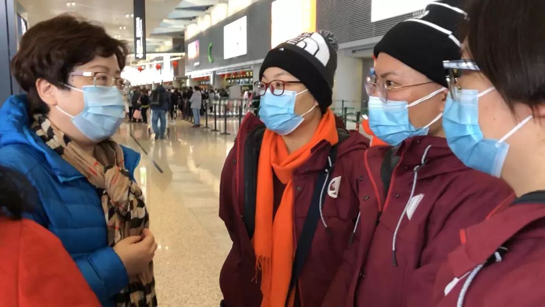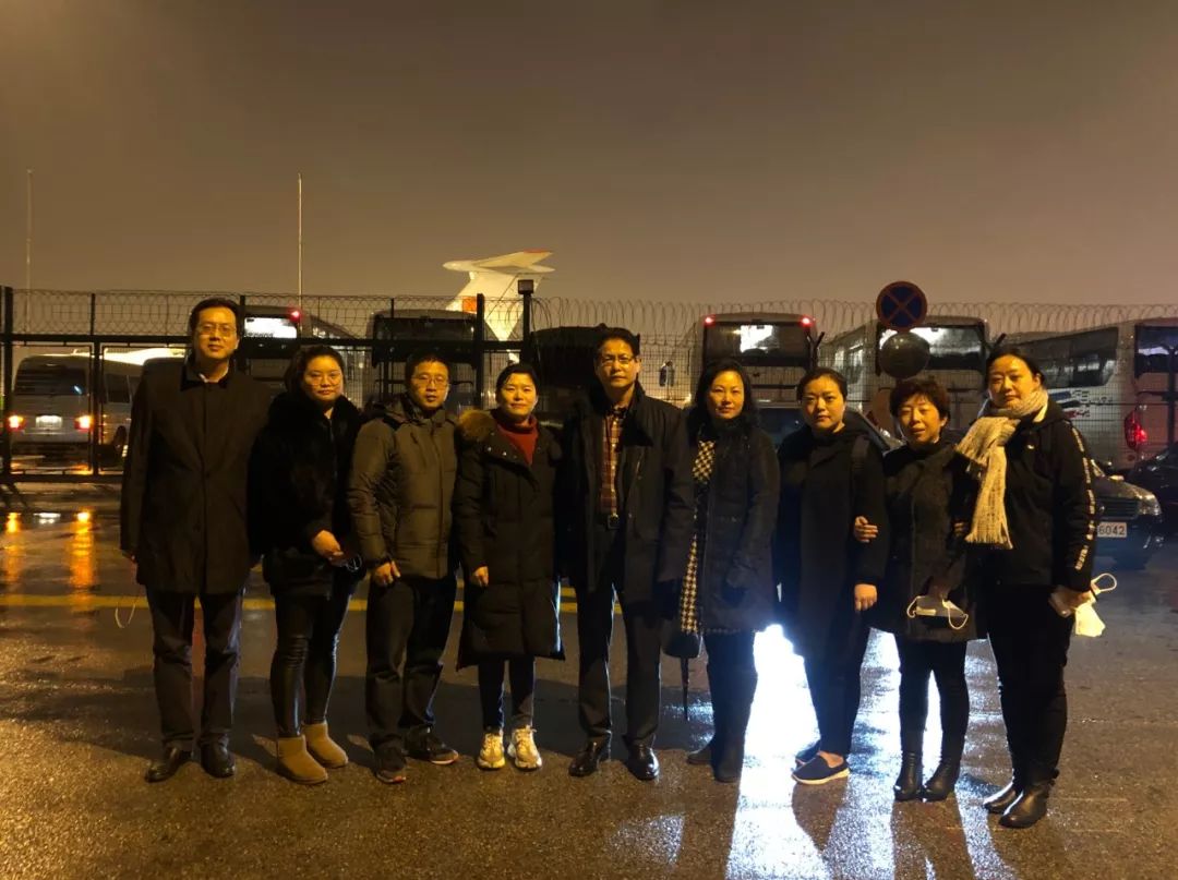 △曙光医院院长周华(左5)前往机场为三位医务人员送行