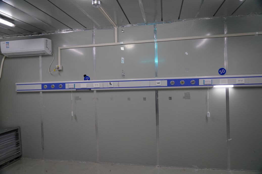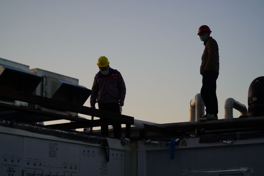 第四批国家中医医疗队(上海)将要承接的病区尚未完工,大家只能从围栏的破损处进入,到处可见忙碌的工人,匆匆扒了一口又被放在纸箱上的盒饭告诉人们这里的急迫。压路机驶过,一股刺鼻的沥青味迎面扑来,跟在压路机后的工人似是被呛到了,咳了两声。不得不佩服“中国速度”,待我们熟悉了病房走出,原本坑洼的道路已被铺得平平整整。