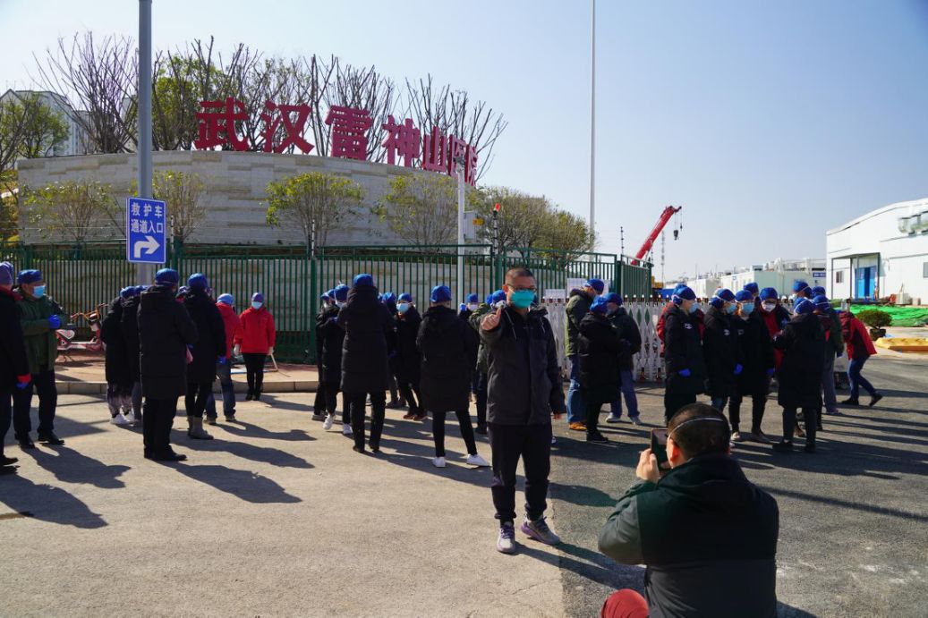 行驶了50分钟,车队抵达了雷神山医院的大门,全副武装的检查人员提示着形势的严峻。司机特意让队员们下车留念,不少人对着镜头比出加油的手势。兵分两路,医生学习HIS系统,护士熟悉病房。