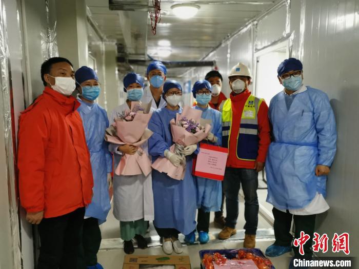 随着医院各项设施建设陆续完工,创造中国建筑奇迹的建设者20日开始大规模离场。当天,建设者们从武汉三镇搜罗来鲜花、巧克力和水果,献给雷神山医院的医护工作者们。鲜花卡片上写满“医者仁心、江城春暖”“你们是白衣天使,更是春天的使者”等暖心话。巧克力盒上贴着建设者们自创的诗句“天使无声向生死,白衣一袭丹心红。雷神山花半开,江城二月春渐浓。”等,让这些白衣天使们感动不已。