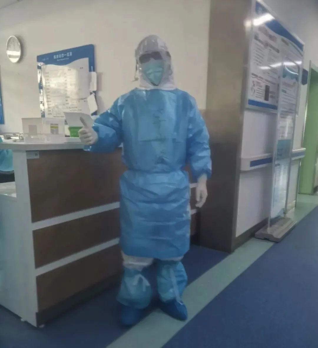 穿戴防护装备时仍有些惴惴不安,还好现场监督的感控人员很细心,也很贴心。“不焦急,慢点,检查再检查,保证安全!加油!”暖心的话语让我的眼角涌出了泪花,护目镜也朦胧了起来。