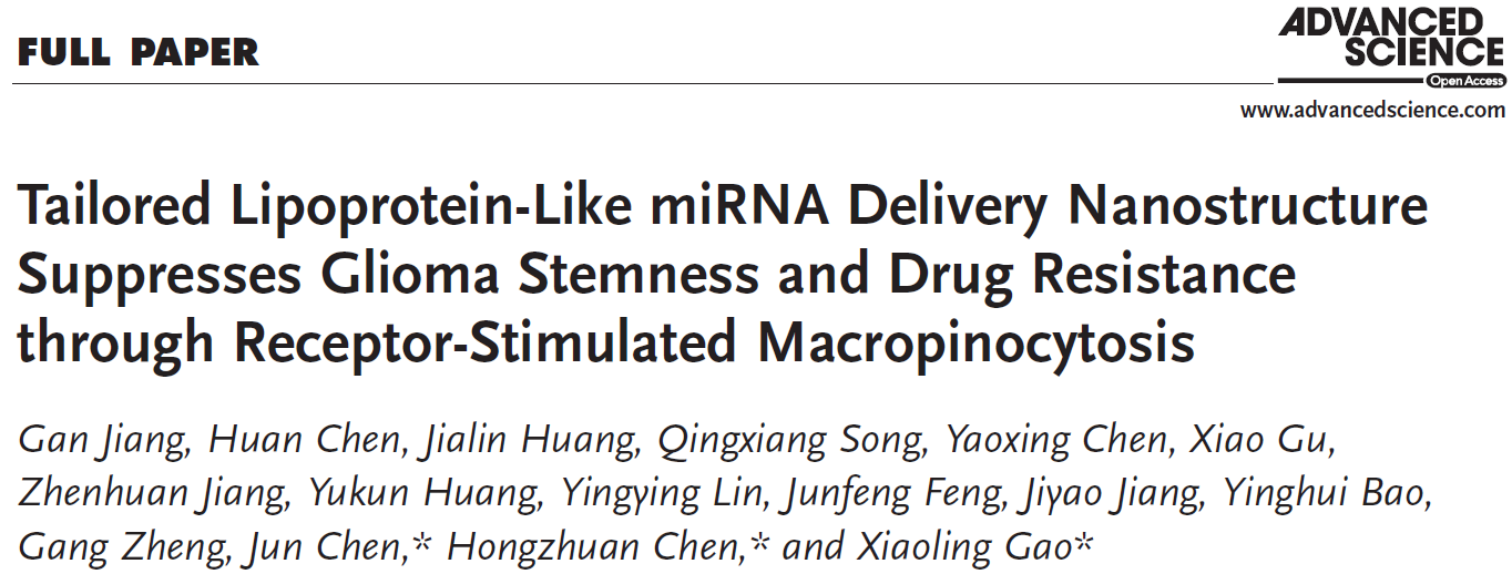 近日,伟德陈红专教授团队在国际知名期刊Advanced Science(《尖端科学》)发表题为“Tailored Lipoprotein‐Like miRNA Delivery Nanostructure Suppresses Glioma Stemness and Drug Resistance through Receptor‐Stimulated Macropinocytosis”的文章,并入选该期刊封面论文之一。该研究综合运用肿瘤干细胞,仿生纳米和microRNA等手段探索神经胶质瘤的药理学调控和干预新策略。Advanced Science是Wiley旗下高质量开放获取期刊(影响因子15.8),刊载覆盖材料科学、物理、化学、医学、生命科学等交叉学科领域的基础和应用研究。