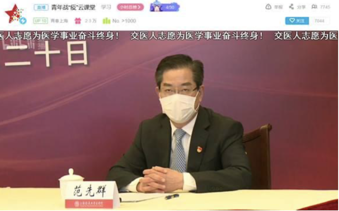东方网记者傅文婧3月20日报道:对许多医学生来说,踏上学医路时或许仅怀着一颗平常心,但走上这条路后,却必然要面对生命交予的重担——这是医者的使命,也是医者的担当。3月20日下午,青年战“疫”·云课堂系列在B站直播,上海交通大学医学院党委书记范先群教授在线主讲了“疫情下的医学生使命与担当”一课。范先群在课上介绍了上海支援武汉医疗救援队中年轻医护的先进事迹,也介绍了众多医学生在积极参加志愿服务中展现的青春风采。