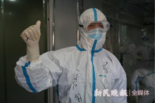 图说:曙光医院医生进入隔离病房前 来源/新民晚报记者 郜阳 摄