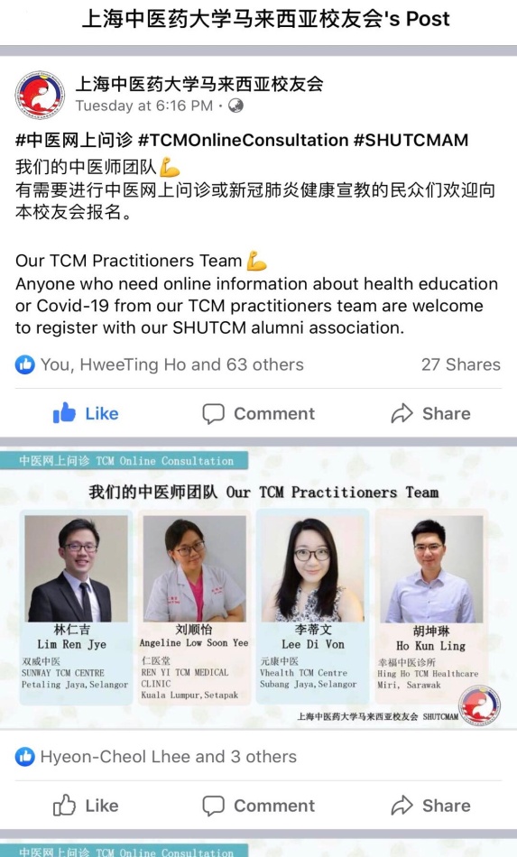 伟德马来西亚校友会发起免费中医网上问诊活动