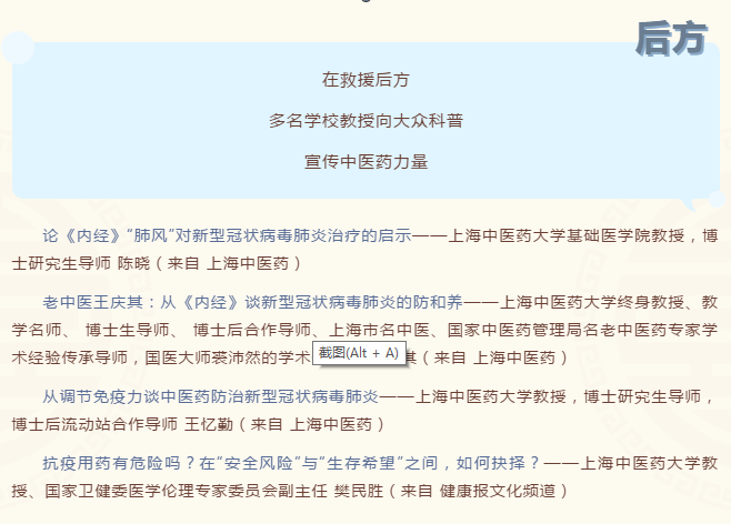 在这场抗击新冠肺炎疫情的阻击战中,中医药发挥了重要救治作用。龙华临床医学院“启德明智”导师团、岳阳临床医学院“中西合璧 德润杏林”导师团、普陀临床医学院“杏林”导师团、曙光临床医学院“四明”导师团、市中医临床医学院“远志”导师团纷纷挖掘英雄上中医人“逆向前行”奔赴抗疫一线,不畏险阻、治病救人的英雄事迹,以“战‘疫’里的中医力量”为主题,拍摄微视频,将最美“逆行者”的可贵品质传递给每一名中医学子。