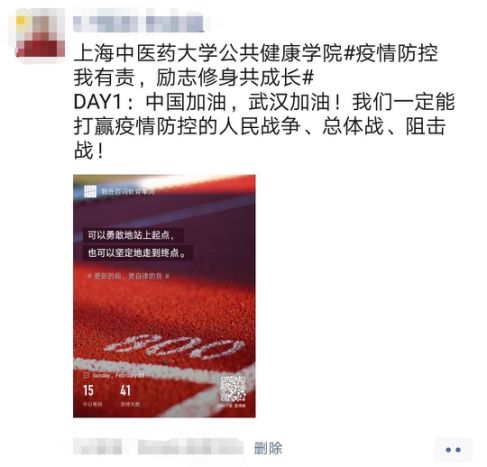 公共健康学院导师团开展“疫情防控我有责,励志修身共成长”每日打卡活动,通过打卡接力,鼓励同学们调整好作息,为自己的生活和学习做好安排,更快地进入学习状态,元气满满地迎接新学期。