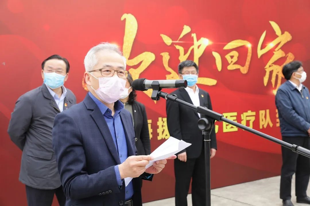 刘华表示,学校系统驰援武汉的使命正式结束了。但是这一场战“疫”,还没有取得最后的胜利。武汉的经历,已经深深铭刻在全体队员的心中。伟大的抗疫精神,将鼓舞每一位队员继续前行!医护人员们将慎终如始、再接再厉,善作善成,以更加昂扬的斗志,投入到新的工作中去。