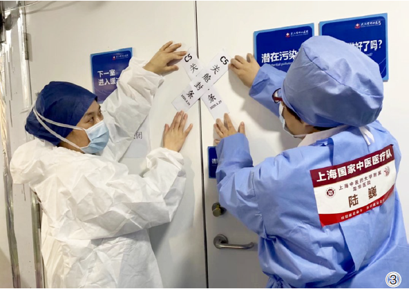 作为一支具有中医特色的医疗队,武汉雷神山医院C5病区护士长、龙华医院护理部副主任陆巍在抓好抓稳护理质量的同时,带领护理团队把龙华医院相关的中医优势护理技术嫁接到雷神山医院C5病区,积极实施中医辨证护理,将八段锦功法、五行音乐疗法、穴位敷贴、艾灸、耳穴贴压、中药香囊等中医护理技术运用到促进患者康复的护理过程中,针对新冠肺炎患者的“湿”和消化道症状,她请教多名中医专家后改良了原穴位敷贴协定方的配方,增加了藿香以化湿和胃。此外,陆巍带领团队开展中医护理研究项目,如基于“表里双解-截断扭转”策略穴位敷贴治疗对普通型新冠肺炎的影响研究、中医人文护理在改善新冠肺炎患者心理状况中的应用研究等,注重数据收集和挖掘,在新型冠状病毒肺炎患者的中医临床护理中找寻规律,总结经验,推广应用,服务更多患者。同时,关注和做好新冠肺炎患者的心理疏导对于治疗也非常重要。病区巡视、护理实操、患者沟通等是护理团队每天的日常,陆巍要求大家在忙碌中要抓住细节,对待患者要细致入微。有位女病人是专业舞蹈演员,每次做完治疗她都会微微拉伸、舞动,姿势很专业,陆巍关照年轻护士们多向这位患者学习舞蹈动作,“这对于这位患者而言,是每天在医院生活治疗的一大动力。”