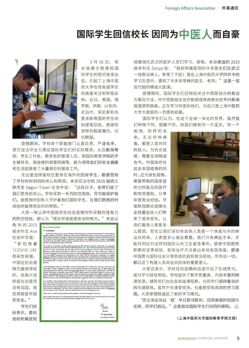 上海外事:国际学生回信校长 因同为中医人而自豪