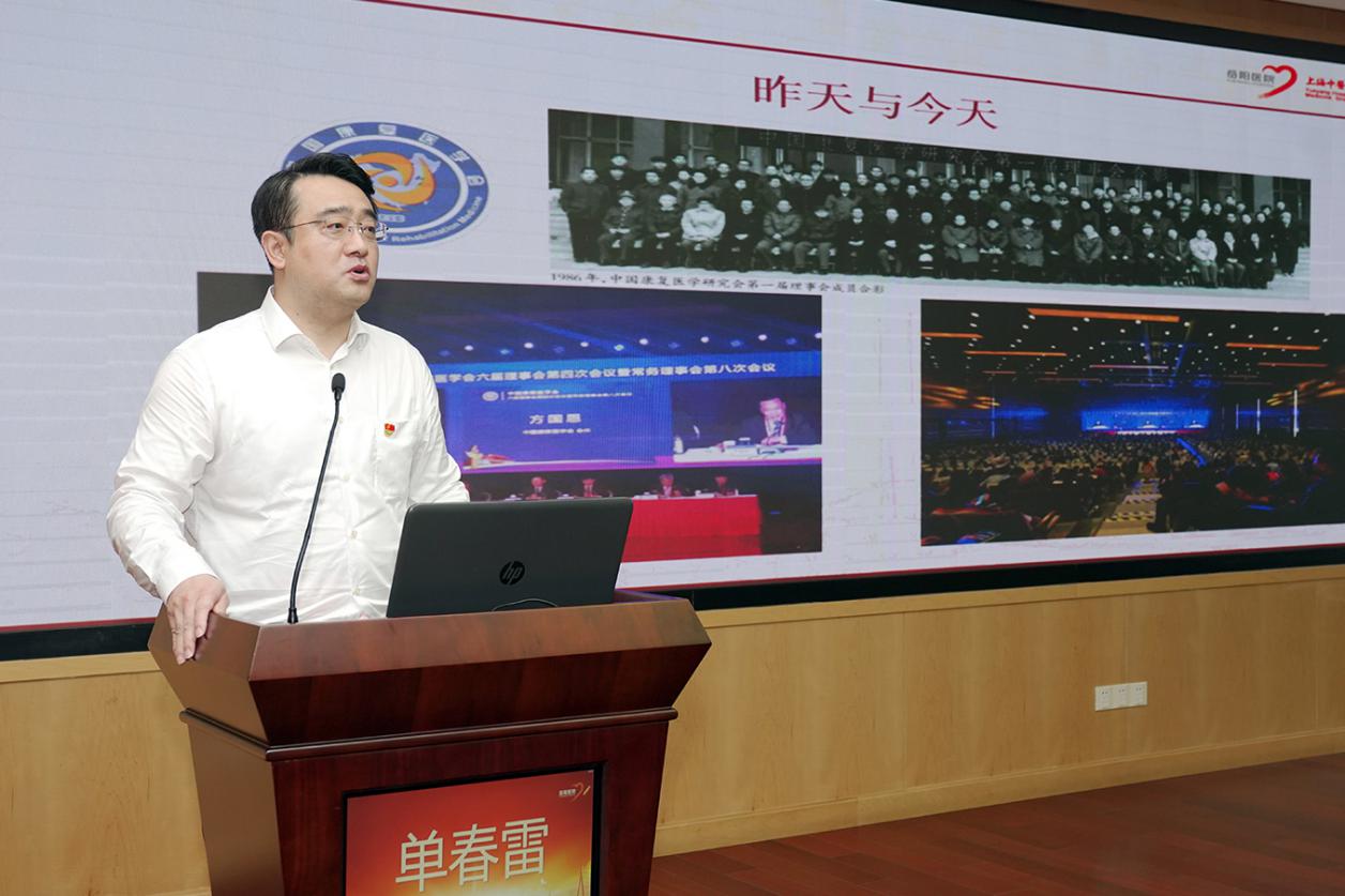 教育部中医智能康复工程研究中心执行主任、伟德国际victor1946官网康复医学院院长、岳阳中西医结合医院康复医学中心主任单春雷教授作“抓机遇,发展中国特色康复医学”主题报告。他介绍了中国康复医学的发展、伟德国际victor1946官网康复学科的发展情况及学科地位,提出了要将中医治疗方式与现代康复医学充分结合,打造多学科交叉的中国特色康复,从而突破目前的发展瓶颈。