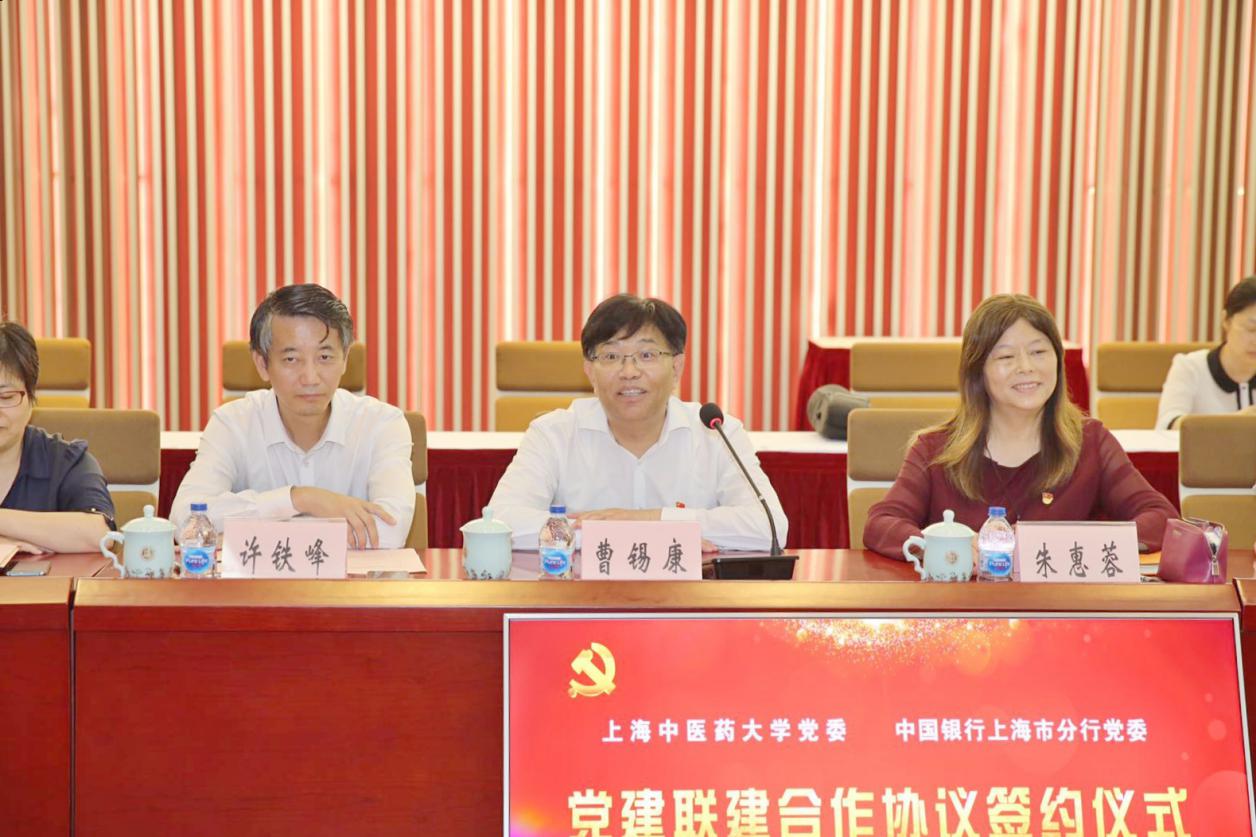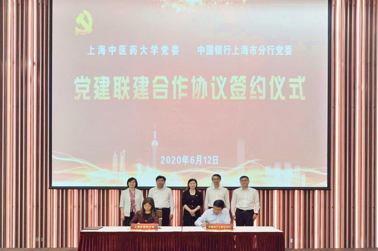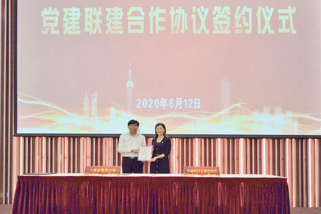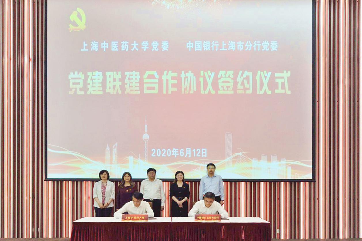 6月12日下午,伟德国际victor1946官网党委与中国银行股份有限公司上海市分行党委党建联建合作协议签约仪式在中医药科技创新楼一楼报告厅举行。中国银行股份有限公司上海分行党委书记、行长赵蓉,纪委书记张剑光,资深客户经理杨军,伟德党委书记曹锡康,党委副书记、副校长朱惠蓉,党委副书记、纪委书记许铁峰,总会计师徐瑶玲出席,双方单位相关部门负责人等参加签约仪式。