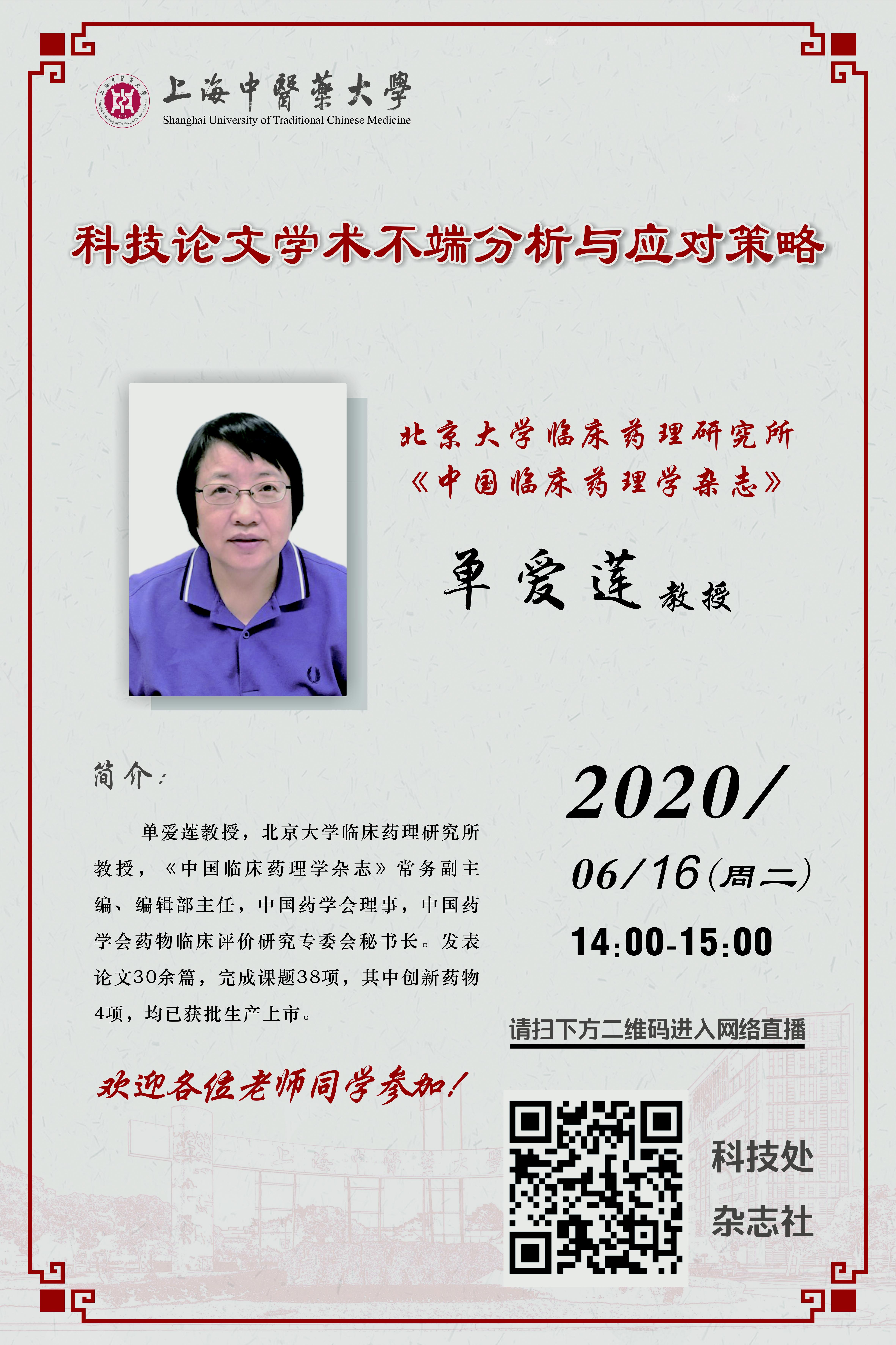 6月16日,伟德科技处和杂志社共同组织开展主题为“科技论文学术不端分析与应对策略”的学术讲座。北京大学临床药理研究所《中国临床药理学杂志》常务副主编、编辑部主任单爱莲教授受邀作讲座报告。讲座采用在线直播的方式,700余人参与在线学习并与专家交流互动。