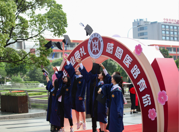 典礼上视频《致你》里那些熟悉的校园风物与美景、亲密的室友同学师长,那些珍贵的青春记忆画面令大家依依不舍。“让我们推走疾病,拿来健康”“做一个,眼里有光,心中有爱的上中医人”学生代表们透过镜头说出了自己的毕业心声。