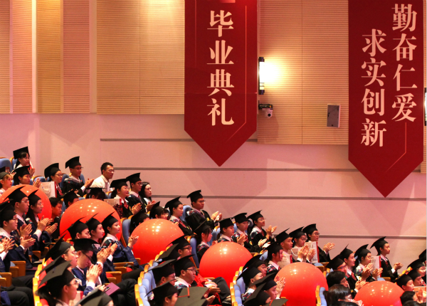 学生代表发言环节引发同学集体共鸣。来自针灸推拿学院,即将赴哈佛大学深造的毕业生陆俊捷,将融合中国传统医学与公共卫生,为人类的健康事业做出自己的贡献;来自康复医学院,参与西部计划做一名大学生志愿服务者的毕业生凯迪尔娅•卡得尔,将到祖国最需要的地方去磨练,成就一个坚强的自己;来自国际教育学院留学生洪锡京选择继续留在学校,从事博士后工作,他将手拿中医学的钥匙,在医学道路上,不断前行。