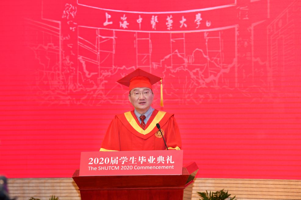 我希望,在座的你们步入社会之后,以前辈们为榜样,不忘医者初心,勇担杏林使命。社会远比你们想象的更为复杂和无奈,不要让理想与现实的差距成为你悲观颓废的借口,更不要在日趋平淡的工作中安于现状、随波逐流。希望你们用积极的心态去面对这个世界,用强壮的精神力量去战胜一时的困难与挫折,用坚定的理想信念去坚守自己的专业选择。以青春岁月镌刻“岐黄医梦”,建立起中医人的“中气”,谱写出上中医人的“车水马龙”。