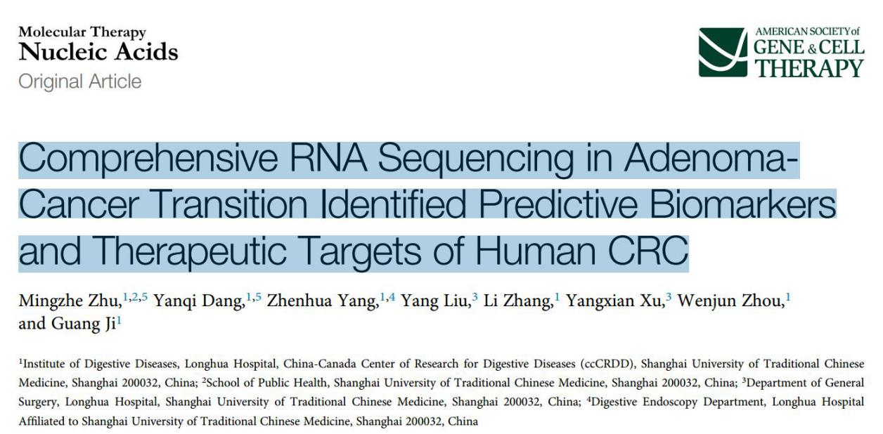 近日,伟德脾胃病研究所季光团队,与附属龙华医院胃肠外科许阳贤团队的合作研究,在结直肠癌炎癌转化机制和早期生物标志物发现上取得重要进展,研究发现为结直肠癌的早期诊断及治疗提供实验依据。研究成果分别在国际学术期刊Molecular Therapy-Nucleic Acids及Clinical and Translational Medicine上发表。