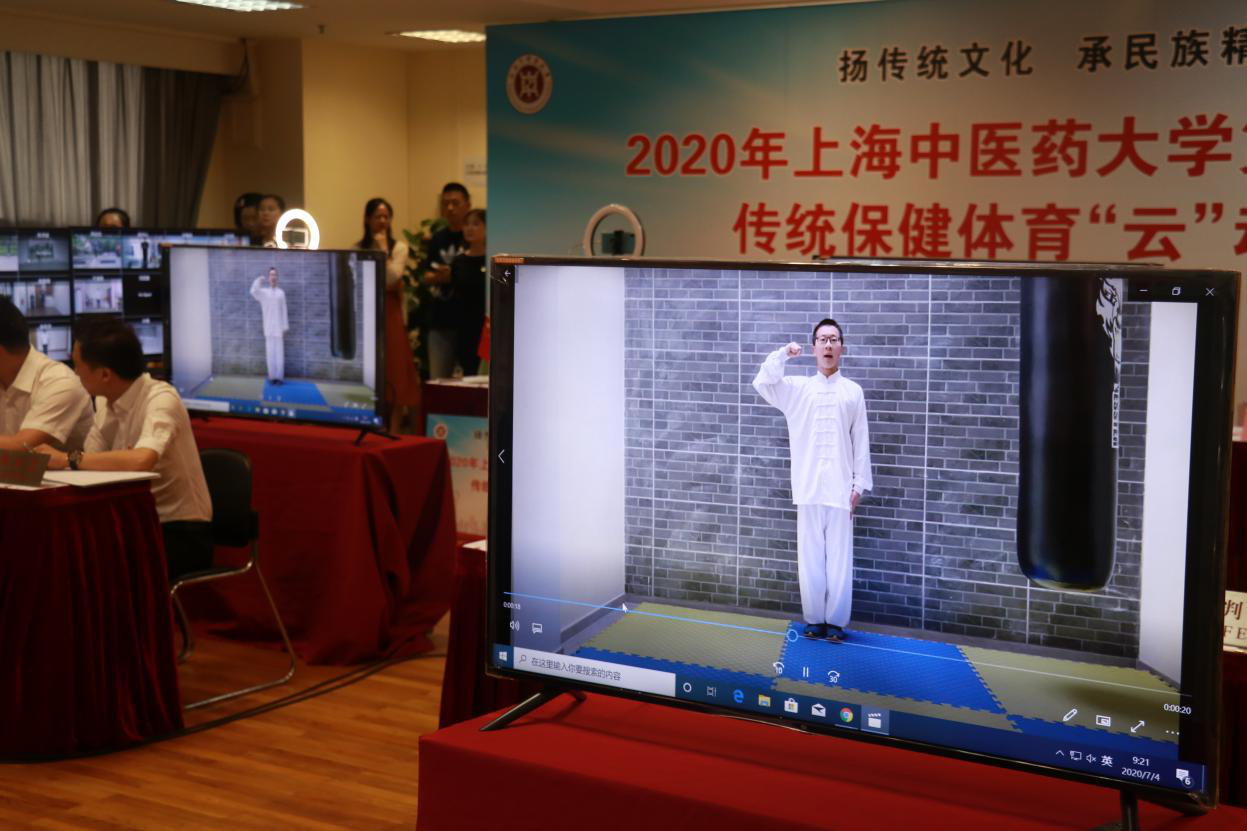 解放日报·上观新闻记者了解到,“云动会”面向学校全体在籍学生,包含本专科生、研究生及留学生,共设武术、功法及创意项目三大类,分选拔赛和决赛两个阶段。“云动会”开赛以来,仅前期就收到了300余名学生上传的视频。根据竞赛规程,经过裁判组评定,共有54名学生进入决赛,进行八段锦、五禽戏、太极拳、武术拳操等5个项目的角逐。