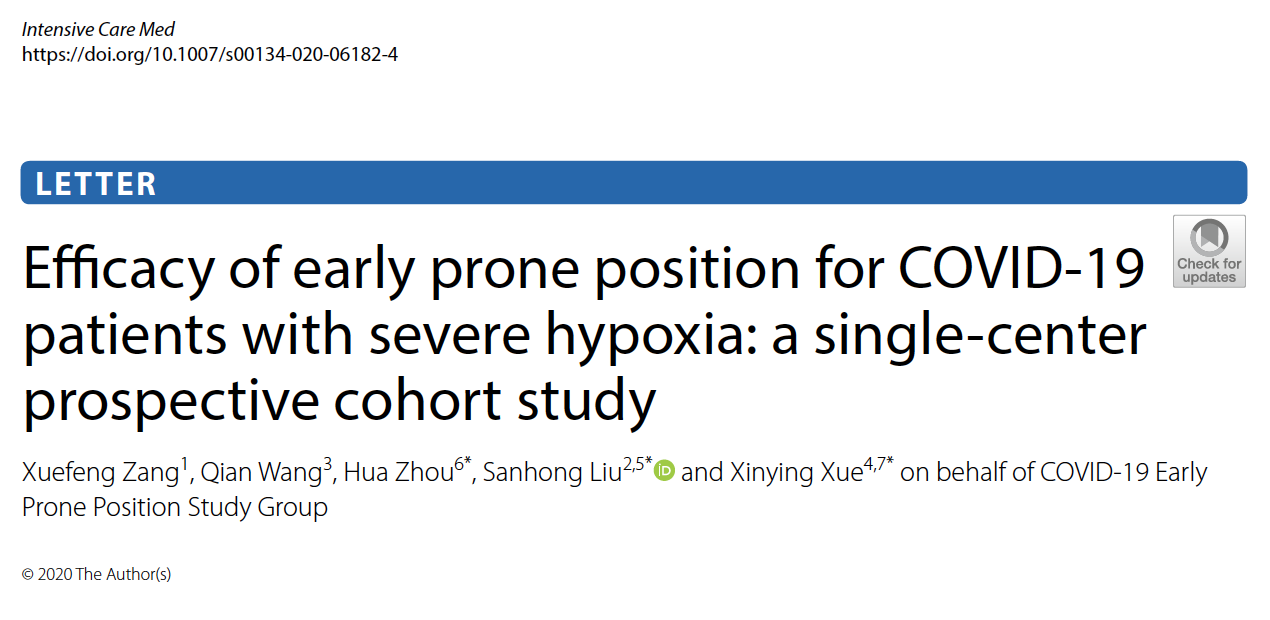 随着COVID-19的全球流行,截至2020年8月6日,共有19,093,957人感染,死亡713,408人,死亡率为3.7%。许多COVID-19患者因严重缺氧而死亡,找到一种简单有效的COVID-19患者治疗方法显得尤为重要。从2020年2月1日至2020年4月30日,共有60名COVID-19严重缺氧患者入组。23例患者采取早期俯卧位,37例患者未采取。在俯卧位组,30分钟后脉搏血氧饱和度(SpO2)从91.09±1.54%增加到95.48±1.73%(P <0.01)。呼吸频率(RR)从28.22±3.06次/分钟降至24.87±1.84次/分钟(P <0.01)。ROX指数从3.35±0.46增加到3.96±0.45(P <0.01)。然而,非俯卧位组的SpO2、RR和ROX指数没有显著差异。此外,早期俯卧位也可明显改善一些患者的CT成像表现。随访90天后,俯卧位组有10例(43.5%)COVID-19患者死亡,而非俯卧位组有28例(75.7%)COVID-19患者死亡。对于早期俯卧位改善缺氧的潜在机制,推测可能是由于血流重新分布引起的,水肿液在重力作用下重新分布到腹侧,萎缩性肺泡在俯卧位时重新开放,导致V/Q改进。总之,这项工作将有助于临床医生利用俯卧位治疗严重缺氧的COVID-19患者,降低严重缺氧的COVID-19患者的死亡率,对于COVID-19患者的治疗有一定的指导意义。