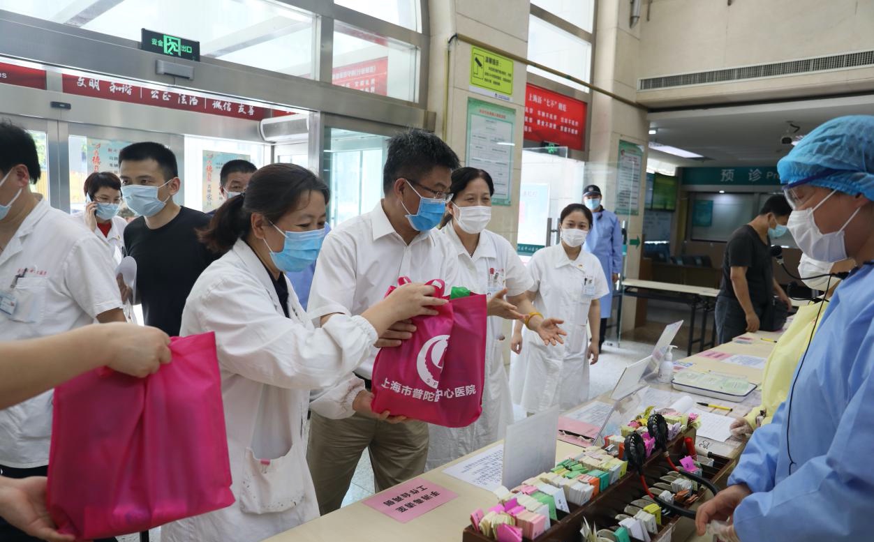 校领导们与各医院党政领导班子先后前往门诊流调处、急诊、儿科及冬病夏治门诊、药房、收费及医技等部门,亲切慰问一线工作人员,代表学校党委感谢医务人员在疫情防控的关键时期,不惧酷暑,坚守岗位,为上海百姓提供高效、优质、温馨的服务,叮嘱他们注意身体,在确保工作任务顺利完成的同时,做好防暑降温工作。同时还送上了防暑降温用品以示感谢和关怀,并强调在疫情期间要把好医院流调关,更要紧绷安全这根弦。