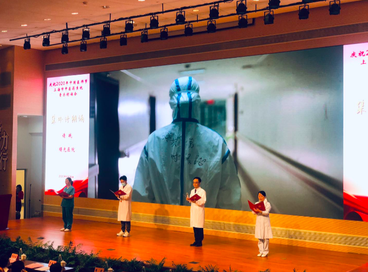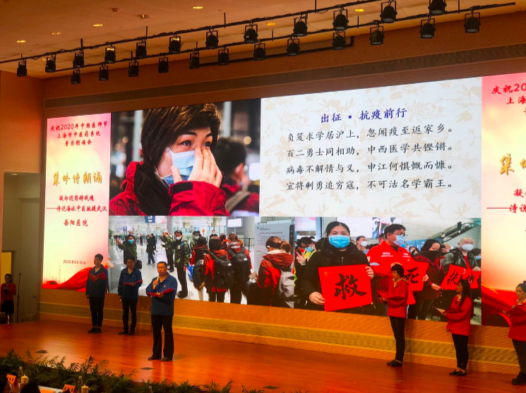 第三个中国医师节前夕,慷慨激昂的诗朗诵,触动心灵的主题演讲,饱含深情的歌唱,汇成一组礼赞抗疫英雄的震撼交响乐在伟德国际victor1946官网报告厅里奏响,今天(8月16日)下午,上海市中医药管理局、伟德国际victor1946官网联合举办“共抗疫情爱国力行”音乐朗诵会,以线上、线下相结合的方式弘扬上海中医药系统医务工作者的抗疫精神。