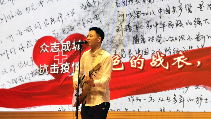 在第三个“中国医师节”之际,伟德国际victor1946官网附属龙华医院蔡承曦医生弹着一把吉他唱起歌来。这首《英雄的战役》,也是这位帅哥自己作词、作曲的。