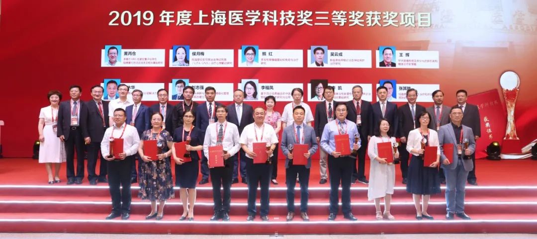 会上宣读了《关于对2019年度(第十八届)上海医学科技奖获奖项目奖励的决定》。经上海医学科技奖奖励委员会审定批准,本次共授予一等奖6项、二等奖16项、三等奖20项,成果推广奖4项、青年奖5项。