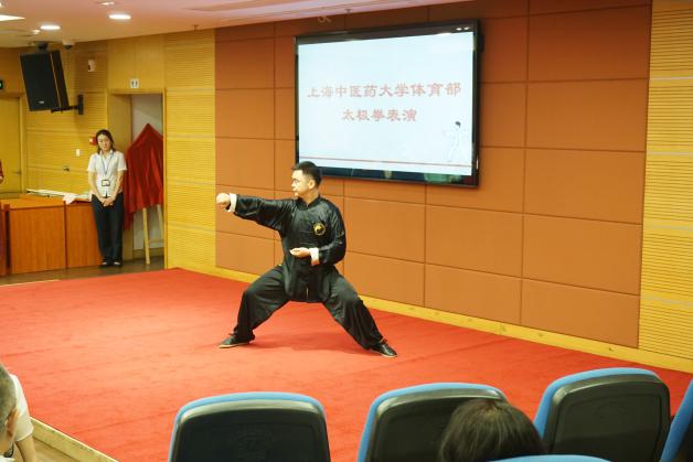 仪式上,伟德体育部教师陆松廷和冯金瑞、黄浦区中医养生功法队分别带来太极拳、五禽戏等功法表演。伟德“五禽戏传承基地”于2018年被教育部认定为第一批全国普通高校中华优秀传统文化传承基地。五禽戏整套功法效仿虎之威猛、鹿之安舒、熊之沉稳、猿之灵巧、鸟之轻捷,为国家级非物质文化遗产,动作简单易学,易于推广。