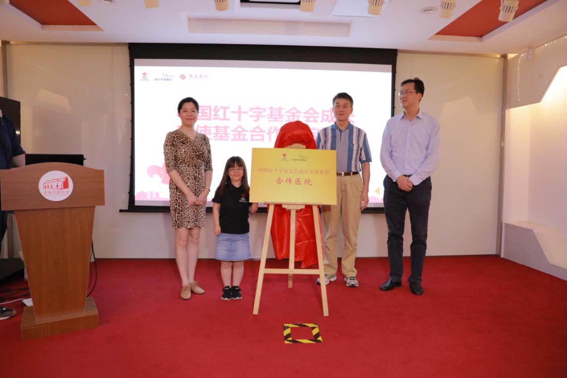 8月29日下午,中国红十字基金会与附属曙光医院联合启动上海首个中医类儿童健康成长专项公益基金。中国矮小人士联谊会会长逯家蕊、黄浦区科协主席刘晓华、附属曙光医院儿科主任赵鋆共同为中国红十字基金会成长天使基金合作医院揭牌。