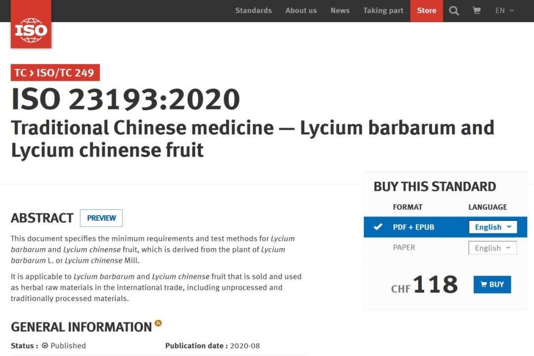 近日,国际标准化组织(ISO)正式发布《中医药-枸杞子》国际标准(ISO 23193:2020 Traditional Chinese medicine –Lycium barbarum and Lycium chinense fruit),该标准由伟德国际victor1946官网王峥涛教授领衔,石燕红副研究员(提案人)、杨莉研究员、王瑞教授等组成的中药标准化研究团队主导制定。