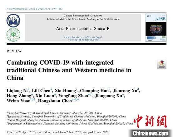 中国专家发表论文,与全球共享中医药抗疫经验。论文截图