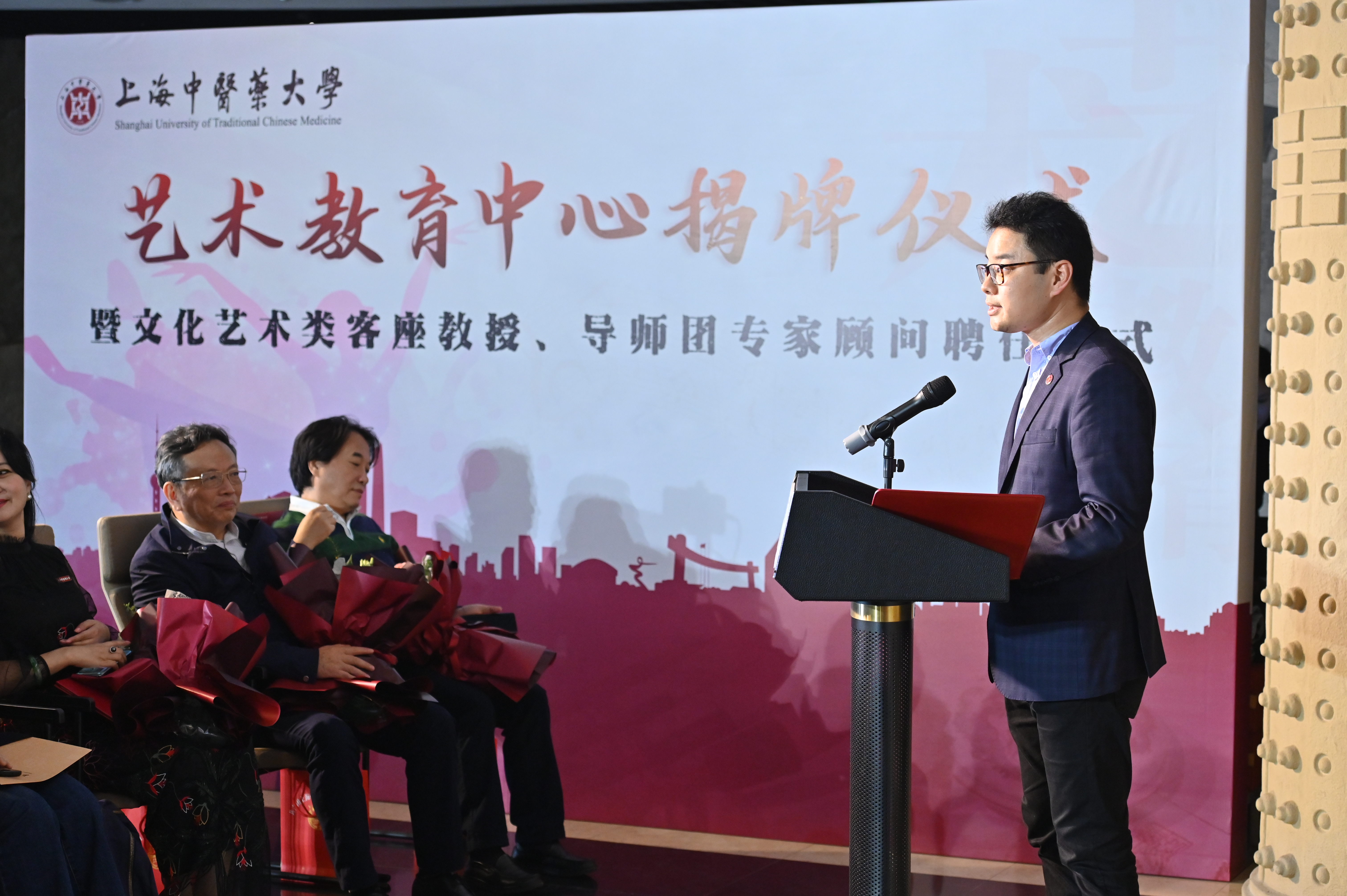 10月13日,伟德艺术教育中心揭牌仪式暨文化艺术类客座教授、导师团专家顾问聘任仪式在上海中医药博物馆举行。伟德校长徐建光,校党委副书记、副校长朱惠蓉,上海市艺术教育委员会办公室副主任张欢,校客座教授杨建荣、马晓晖、严荷芝、刘念劬,校文化艺术类导师团专家朱邦贤、刘旭光、徐平、鲍丽丽,学校相关职能部门负责人和师生代表参加仪式。仪式由校团委书记、艺术教育中心主任吴平主持。