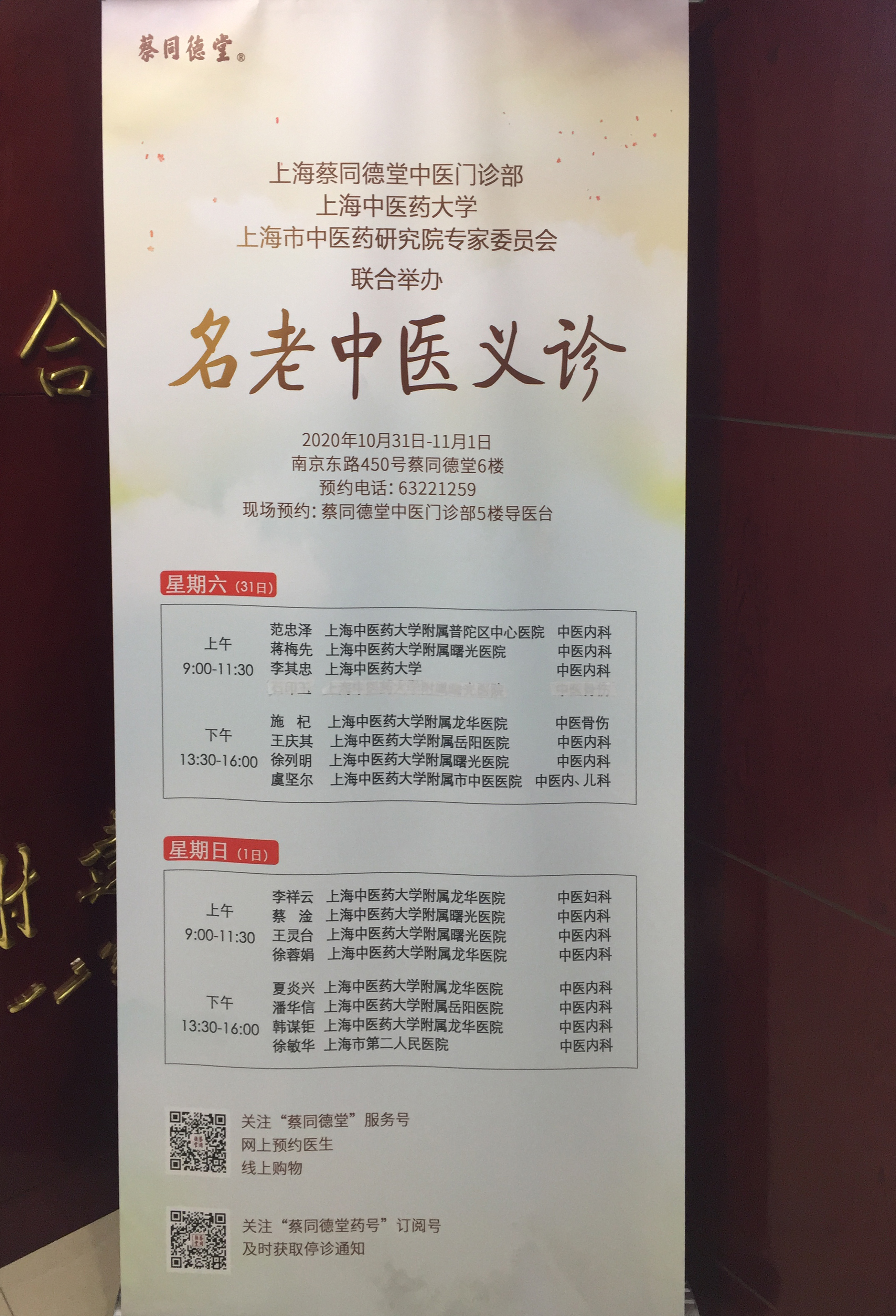 10月31日至11月1日,伟德专家委员会主任施杞带领全国名中医、上海市名中医等共15位专家,与富有中医传统文化特色的蔡同德堂联合举办了“名老中医义诊”活动。