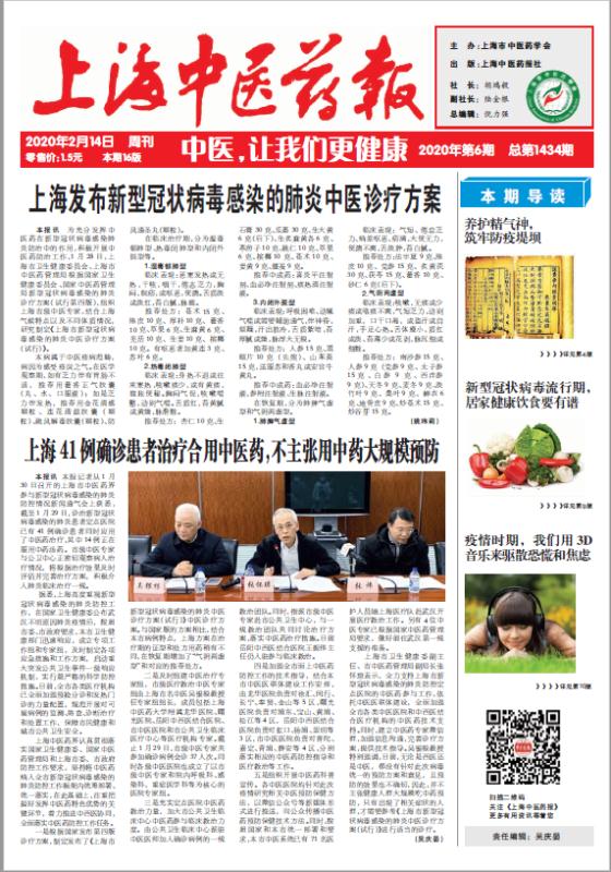 为深入贯彻习近平总书记关于新型冠状病毒疫情防控工作重要指示精神和党中央国务院决策部署,新冠肺炎疫情发生后,《上海中医药报》及时报道和反映上海中医药行业防控疫情、复工复产的情况,热情讴歌抗疫一线医护人员和科研人员等忘我工作的感人事迹和高尚情操,采访有关人士深入解读上海新冠肺炎诊疗中医药方案,组织相关专家撰写居家防控新冠肺炎的中医药知识,从而科学普及中医药防疫理念,帮助普通百姓树立依靠中医药战胜新冠疫情的信心,营造万众一心、众志成城抗击新冠肺炎的舆论氛围。从今年2月14日起至3月13日,《上海中医药报》连续5期推出“抗疫专刊”,为助力抗击疫情、维护群众健康、充分发挥中医药在抗击疫情中发挥独特作用做出贡献。(杂志社)