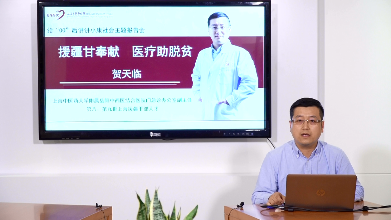 附属岳阳中西医结合医院门急诊办公室副主任贺天临是第八、第九批上海援疆干部人才,于2015年8月至2018年8月参加援疆工作。他讲述了自己援疆期间开设名医工作室、急救心脏骤停的出租车司机、协调业务骨干进修学习、为困难群众开设保健能力培训助力脱贫的生动故事。