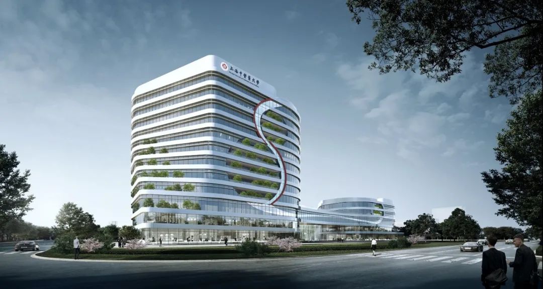 中心建设项目位于伟德国际victor1946官网校区东南角,总建筑面积49979.83平方米,拟建建筑地上12层、地下1层。总体设计以“天圆地方”为理念,建筑形体双螺旋状旋转上升,形成阴阳圆融的整体形态,连廊上方设置“百草园”打造绿色生态校园氛围;外形形成“S”形,契合传统太极图案,并暗含“以悬葫之形,行济世之功”的寓意,连接处的白色玻璃长卷寓意着书卷绵延、求实创新的大医之道。