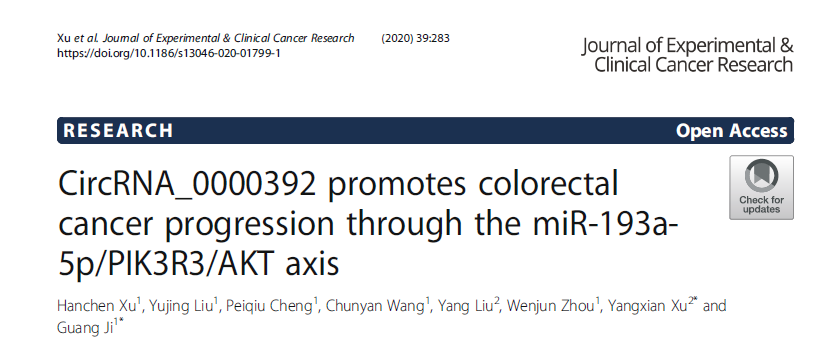近日,伟德附属龙华医院脾胃病研究所季光教授科研团队在结直肠癌的环状RNA(circular RNA;circRNA)研究方面取得进展,最新研究成果CircRNA_0000392 promotes colorectal cancer progression through the miR-193a-5p/PIK3R3/AKT axis发表于Journal of Experimental & Clinical Cancer Research(Q1期刊)。本研究项目由龙华医院脾胃病研究所季光教授团队和胃肠外科主任医师许阳贤团队合作完成,龙华医院为唯一通讯单位。