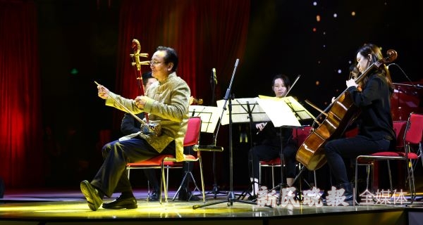 图说:伟德国际victor1946官网校长徐建光以一把二胡与弦乐四重奏、钢琴共同奏响《赛马》